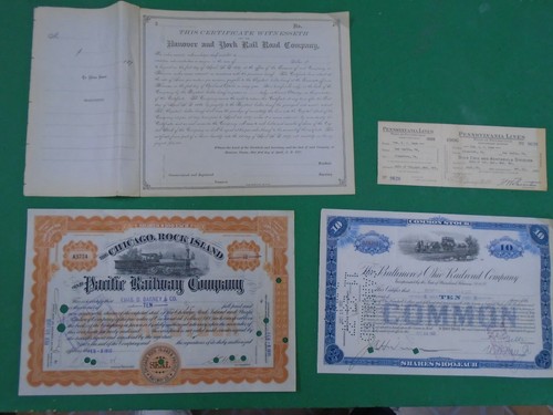 Railroad Stock Certificates Chicago Rock Island Pacific Pennsylvania Lines Lot