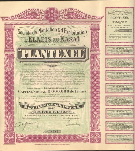 Plantexel - Soc. De Plantation And Dexploration Lelaeis Au Kasaï - 1929