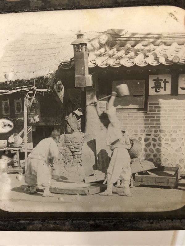 Rare 19C Antique Glass Lantern Slide Corea 떡만들기 Choson Korea Korean No. 4
