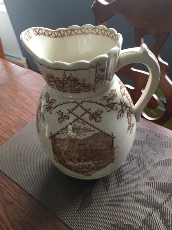 Rare Mid 1800S Hanley Transferware 11 Pitcher Aesthetic Movement