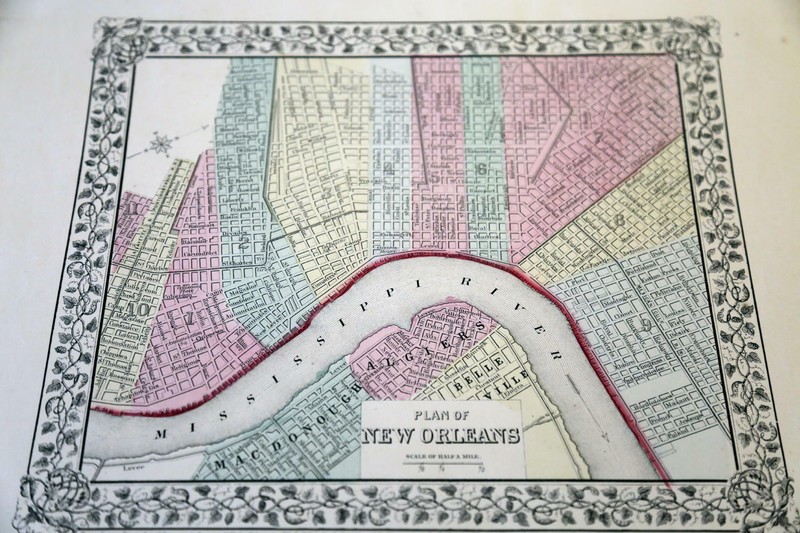 1868 Rare Beautiful Antique Mitchell Atlas Map Of New Orleans-Handcolored