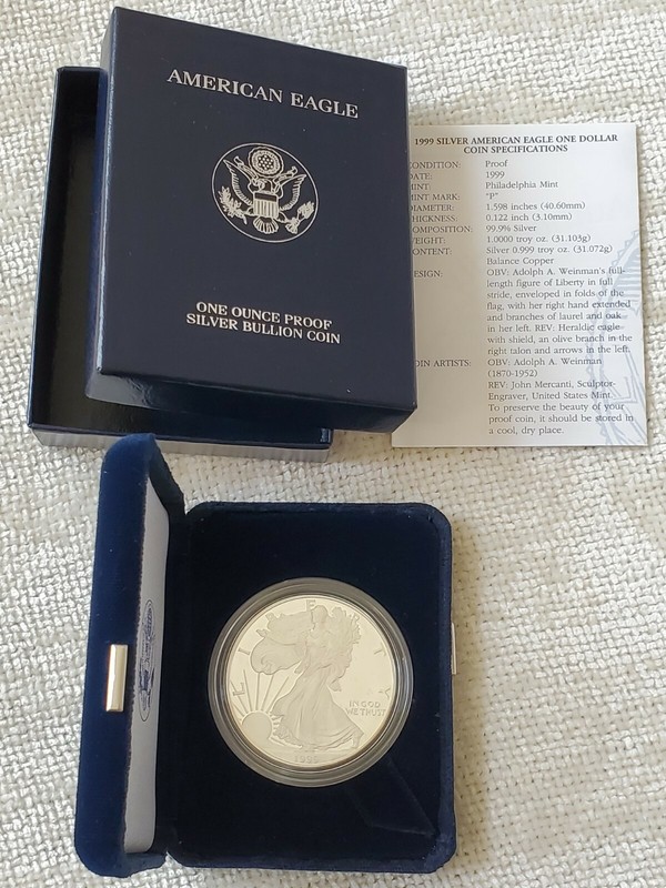 1999 P American Eagle One Ounce Proof Silver Bullion Coin W/ Coa