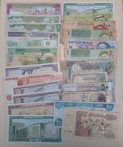 25 Pcs Of Different World Currency Foreign Banknotes Lot, With Few Face Value