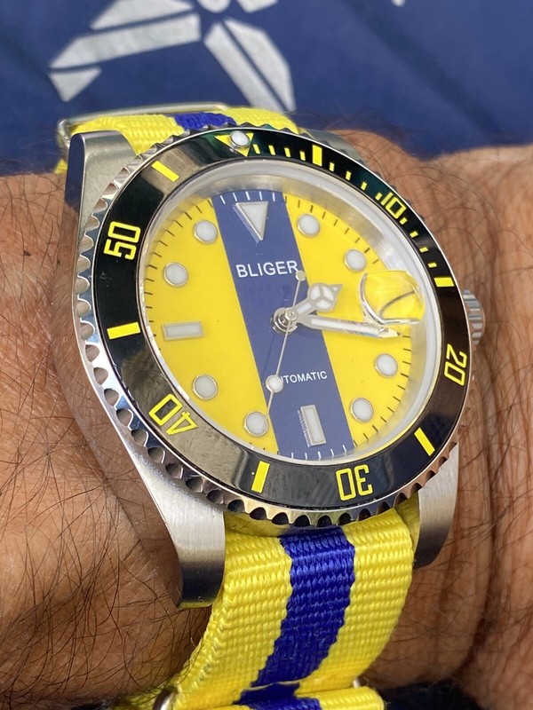 40Mm Bliger Blue & Yellow Dial Sapphire Crystal Automatic Movement Mens Watch131