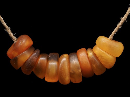 11 Antique Natural Amber Beads Strand. 琥珀色. Berber, Morocco. Tribal, Ethnic