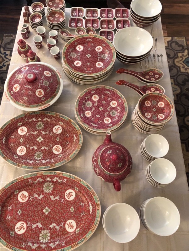 141 Piece: Rare Vintage Chinese Jingdezhen Longevity Dinnerware.