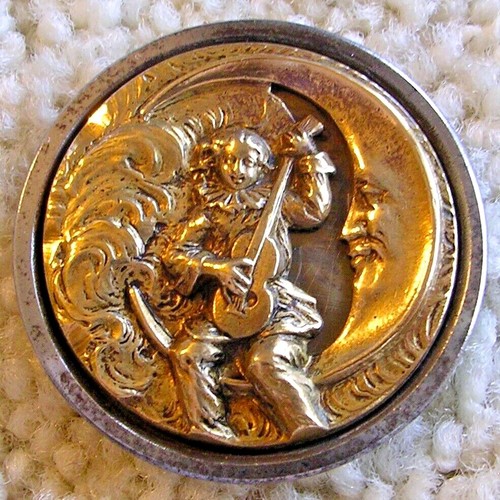 Ex Rare Antique Scaramoche & Moon Brass Button, Ca. 1880S/1890S