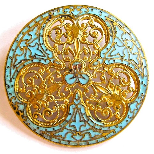 Very Rare Antique French Pierced Turquoise Enamel Button, Ca. 1890S