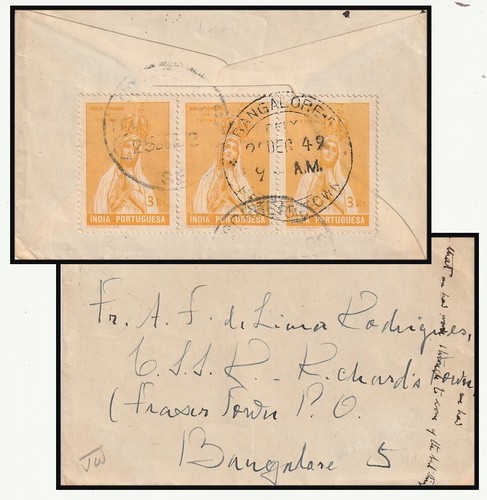 1350 - Portuguese India 1949 Small Cover To Bangalore India