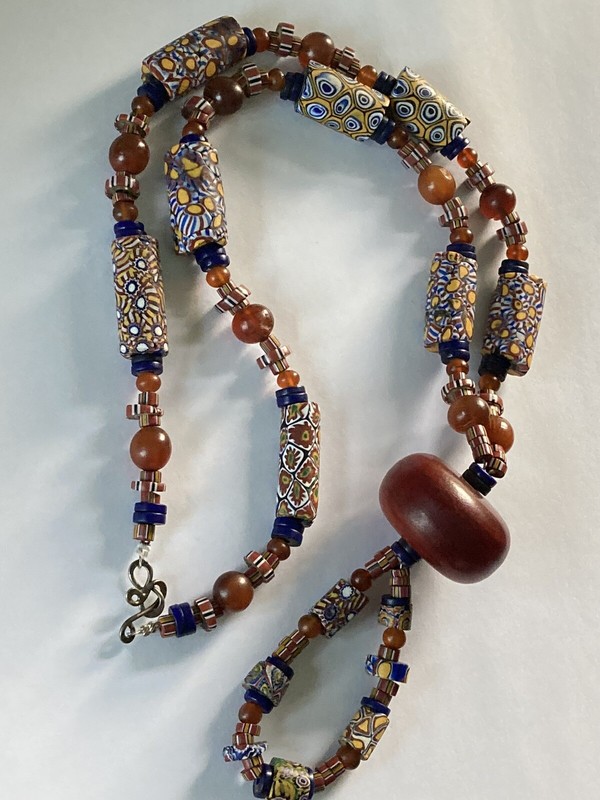 Antique African Italian Trade Bead Necklace Millefiori & Red Amber?