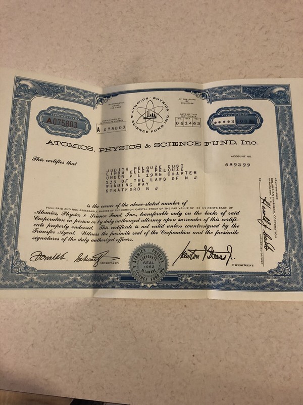 Atomics,Physics, & Science Fund Inc Antique Stocks