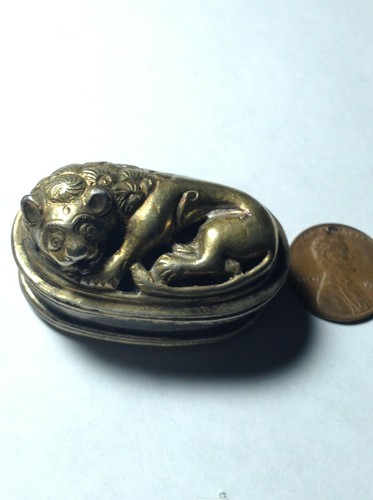 Rare Victorian Sterling Lion Trinket Box Movable Tongue