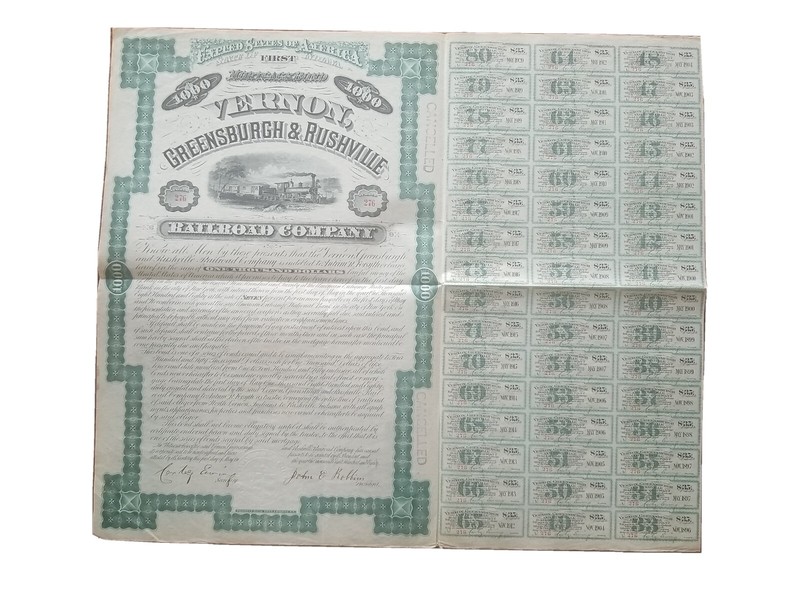 Vernon, Greensburgh & Rushville Railroad Co. 1920 Bond Certificate - Indiana In