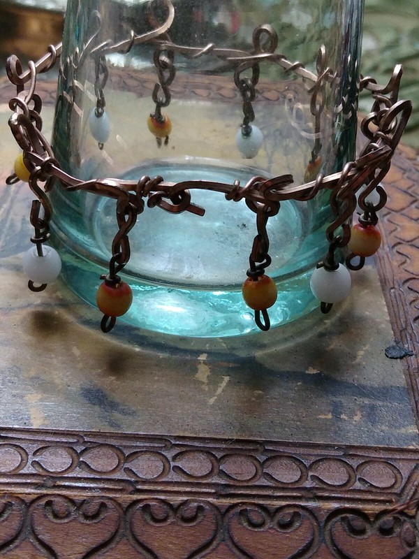 Antique Vintage Childs Bracelet Copper/Brass? Twisted Wire And Old Glass Beads