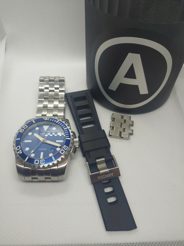 Armida A3 1500M Blue On Blue #365 Diver, Swiss Eta 2824-2, Box, Bracelet, Strap