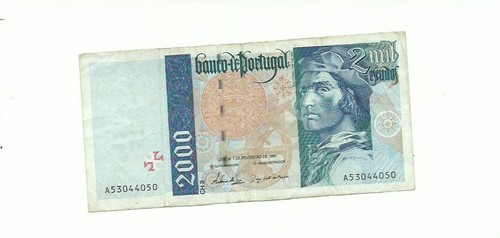 Portugal 2000 Escudos 1996 Banknote -Fine- Free Usa Shipping!