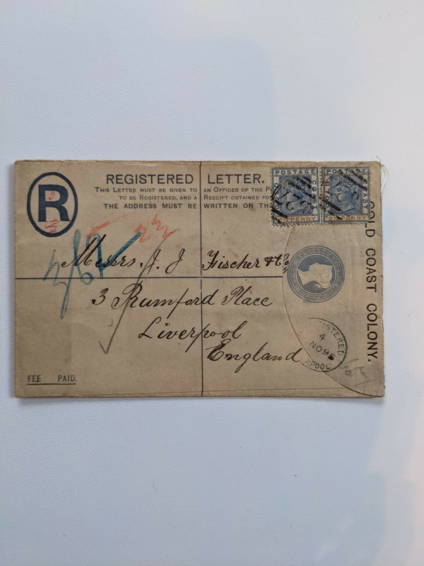 Qv 1895 Gold Coast Colony Registered Letter To Liverpool 2.5P Tied By B27 Superb