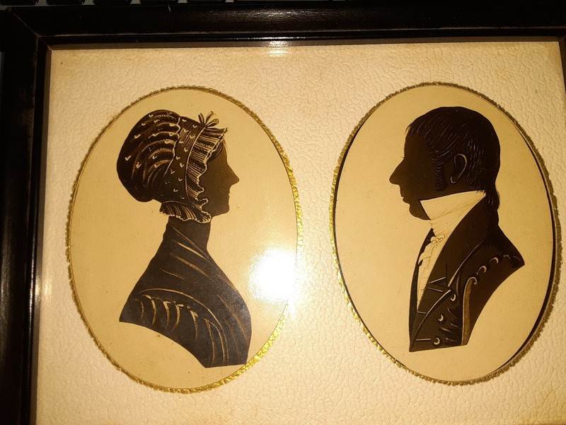 Antique Georgian Rare Pair 19Th Gorgeous Profile Silhouettes Husband & Wife