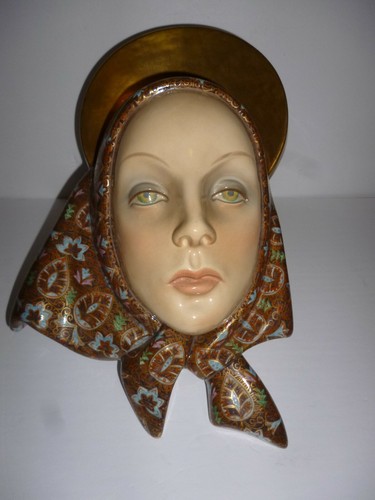 Rare Large Lenci Ceramic 1938 Art Deco Wall Mask Testa Madonna Scavini Porcelain