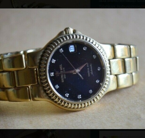 Raymond Weil Geneve 18Kt Gold Plated Diamond Watch Blue Dial Rare