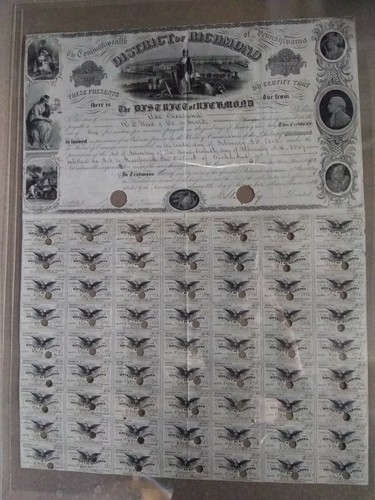 1847 (Philadelphia), Pa- District Of Richmond $1,000 Bond,Circ Fine+,Nice!