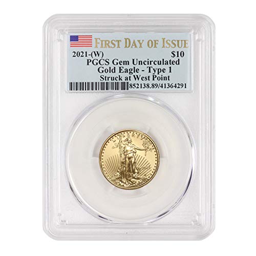 2021 (W) 1/4 Oz Gold American Eagle Gem Uncirculated (First Day Of Issue - Type 1 - Struck At West Point - Flag Label) By Coinfolio $10 Gemunc Pcgs