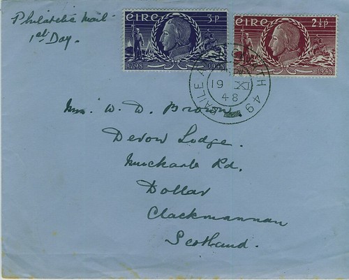 Eire Ireland 1948 Wolfe Tone Set On Plain First Day Cover To Scotland Sg 144-5.