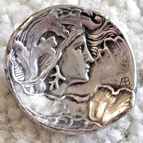 Ex Rare Concave Antique Bargas Eau Lady Repousse Button,1880S/Early 1900S