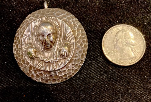 Rare And Strange 800. Silver Edwardian Pendant Of Chinese Coolie In A Kang