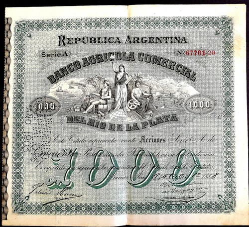 Argentina Banco Agricola Comercial Del Rio De La Plata 1888 Share Bond Stock