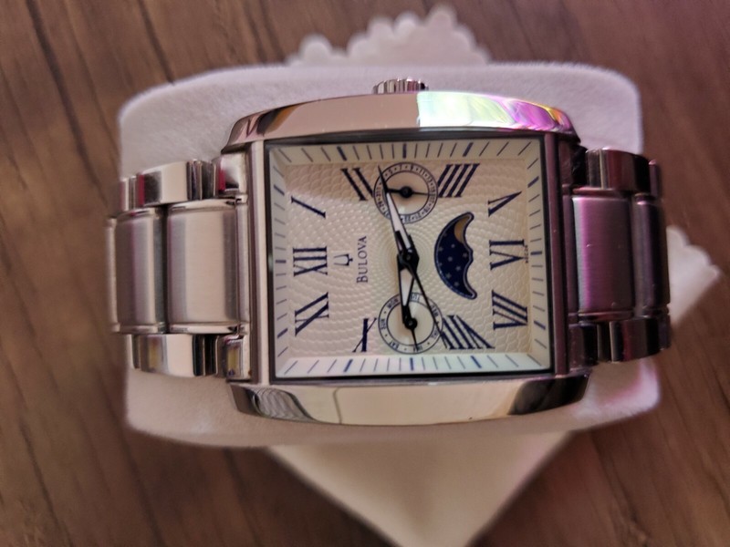 Bulova Mens Rectangular Rare Roman Numeral Sky Cream Face Wristwatch Mint**
