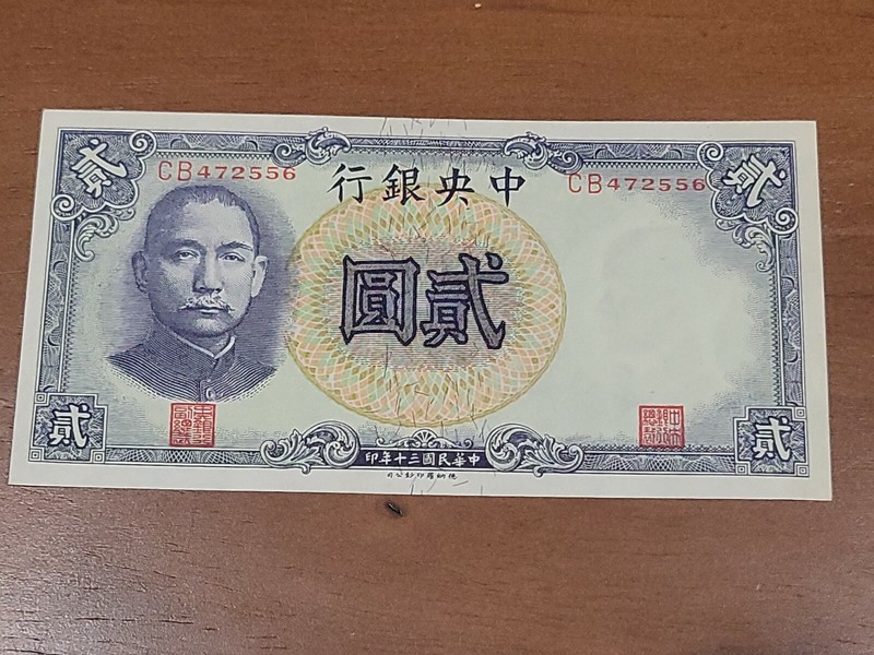 China 1941 2 Yuan Central Bank Of China Banknote Uncirculated P-231Crisp Note