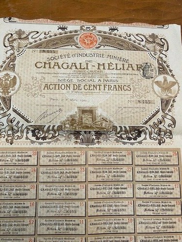 Russie Caucase Societe Dindustrie Miniere De Chagali -Heliar A 100 Frs 1902