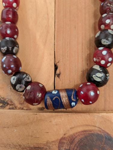 Antique Trade Beads Old Venetian Ruby Red Eye Skunk, Blue Lampworked, Zb013