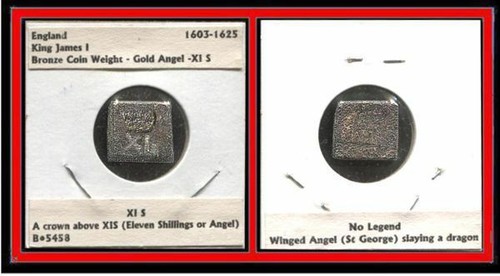 Brass Coin Weight • England • 11 Shilling (Angel) • 1603-1625 • B•5458•