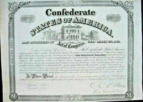 Confederate States Of America $ 1000 Loan +Cp Richmond 1863 Usa Customshouse Csa