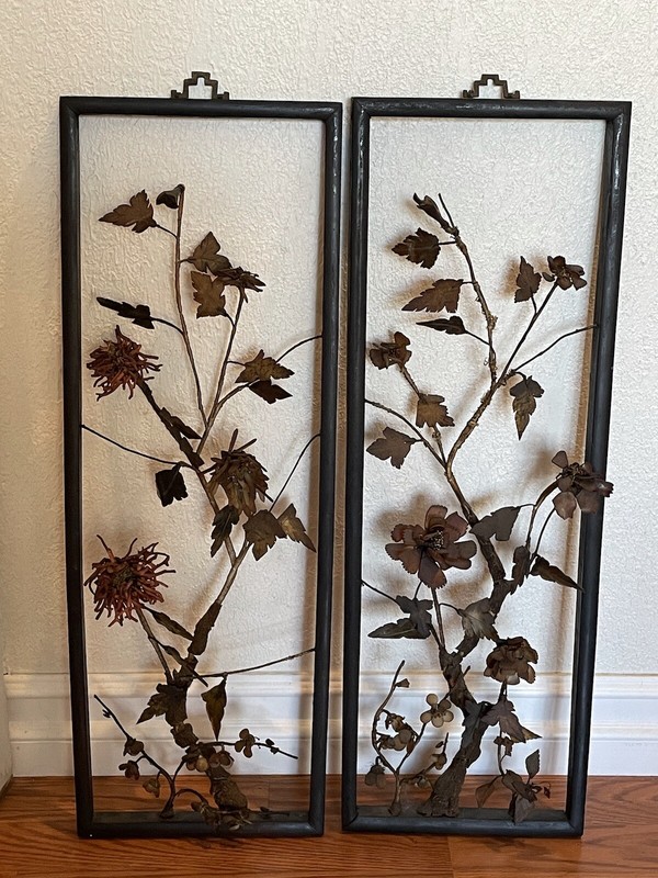 Rare Antique 26X9 Chinese Jade Salmon Coral Branches Trees Wall Hangings