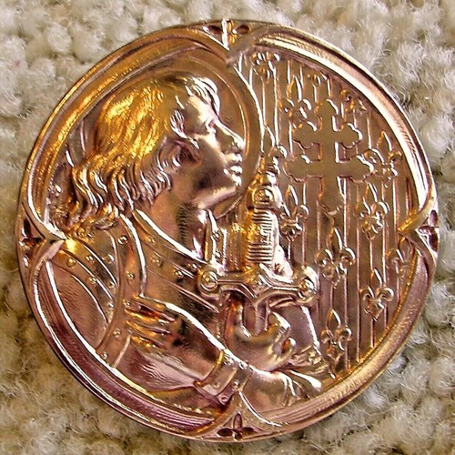 Rare Antique Brass Joan Of Arc In Full Armor Button, Ca. Early 1900S