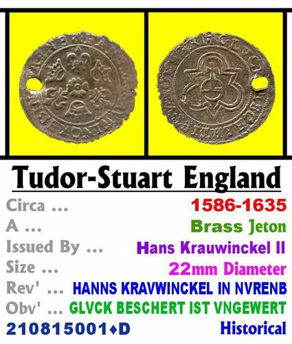Brass Jeton • England • Hans Krauwinckel Ii • 1586-1635 • 210815001•D