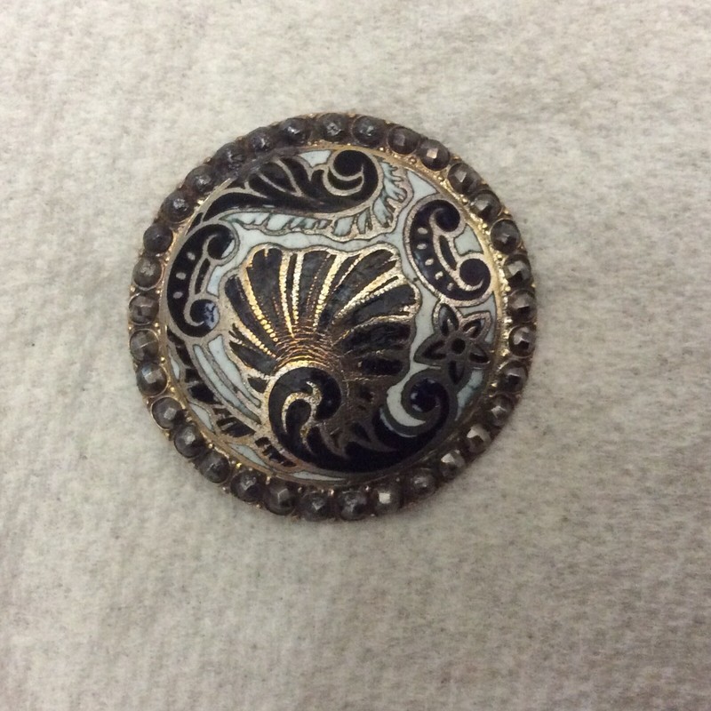 Ex Rare Antique French Black And White Shell Motif Enamel Button, Ca. 1890S/1900