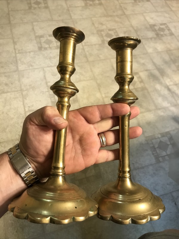 18Th Century Rare 9 3/4 Inch Tall Heavy Brass English 1740S Pair Candlesticks