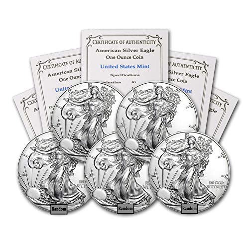 1986 - Present (Random Year) Lot Of (5) 1-Ounce American Silver Eagle Brilliant Uncirculated W/Our Coa