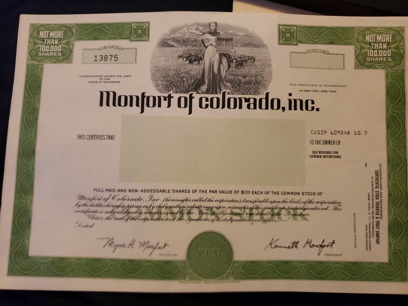 Monofort Of Colorado, Inc Stock Certificate 1969