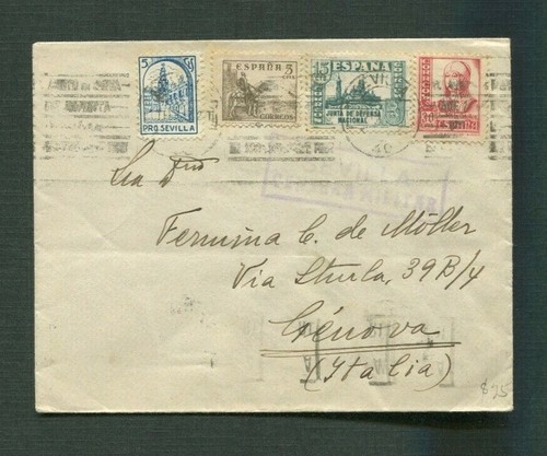 Spain 1937 Scott 641, 647 Plus Civil War Locals Sevilla Censor Cover To Italy