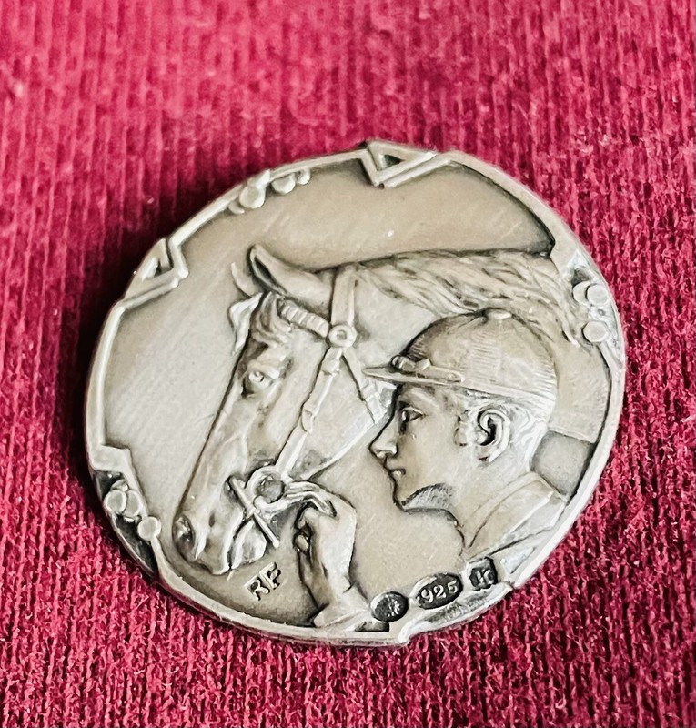 Ex Rare Antique Equestrian Sterling Button, Ca.1905, Hall Marked