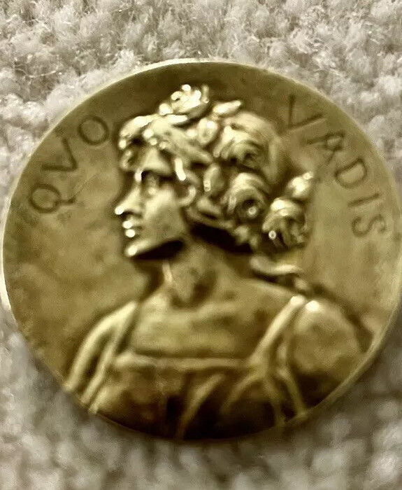 Ex Rare Antique French Art Nouveau Quo Vadis Brass Button, Ca. 1880S/1890S