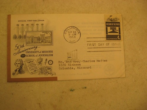 Official First Day Cover 50Th Anniversity Of Missouri School Of Journalism 1958