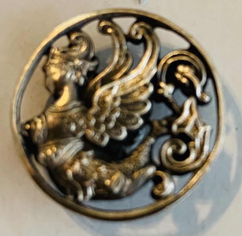 Ex Rare Antique Pierced Brass Harpy Button, Ca., 1880S/1890S