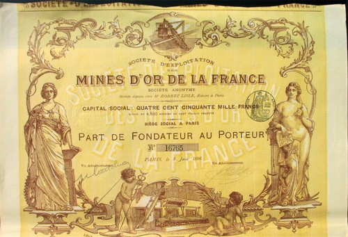 Mines D Or De La France Gold Mine Expl. Paris 1896 Share + Coup Artist E. Alix