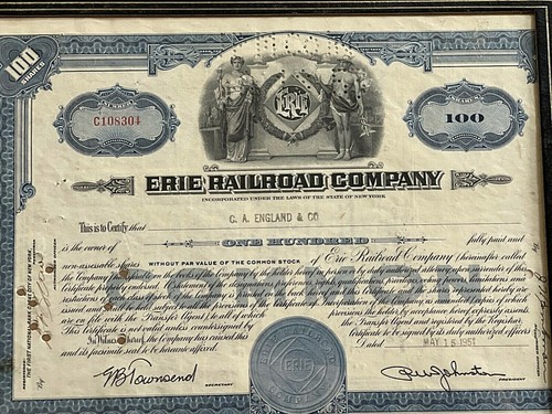 1951 Erie Railroad Company Stock Certificate #C108304 Shares 100 (B)